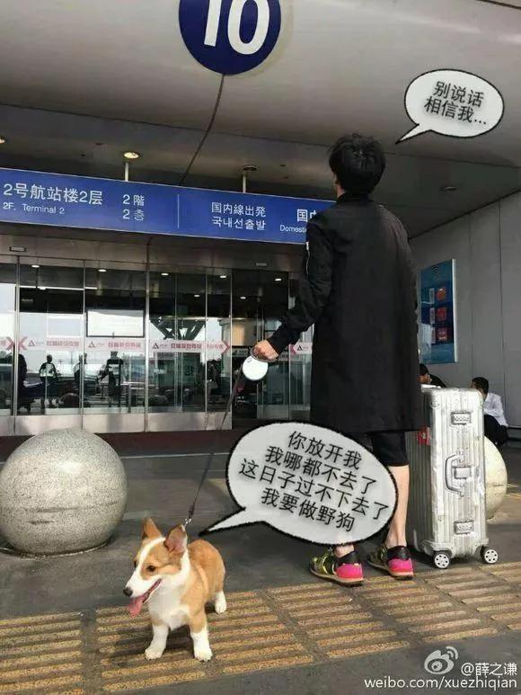 他拍了一组图,假装那是自己的狗(但也假装是自己),想尽办法把它放进行李箱、围成围脖、甚至塞进裤裆,只为带它混过安检。终于,这条微博上了热门,薛之谦的段子手属性被大众发掘,由此开启了他的翻红之路。