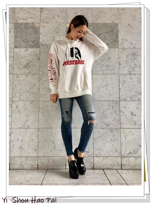 你还可以选择带有徽标的白色连帽卫衣,搭配破洞牛仔裤!如果你想打造淑女般的帅气外观,请使用厚底的乐福鞋会适当改善感觉。