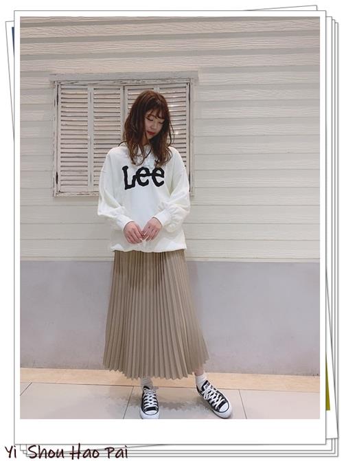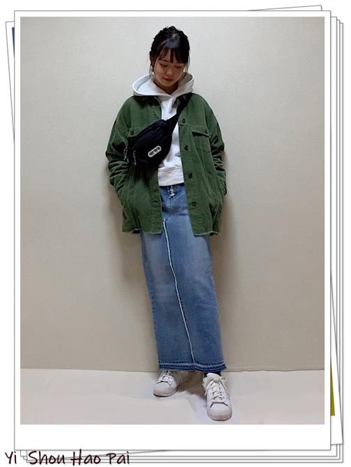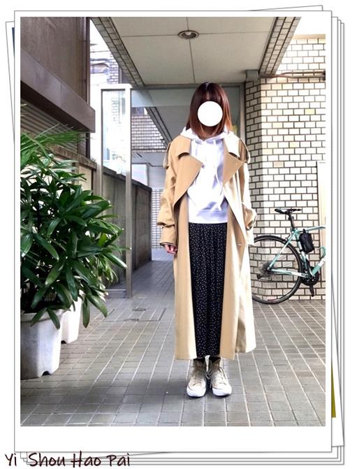 大风衣很方便和大体积的白色卫衣搭配!即使叠穿也可以自然平衡地完成。当你将裙子的长度与外套的下摆保持一致时,看起来就像是很合适的穿搭。