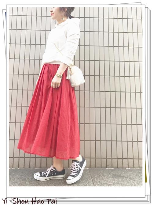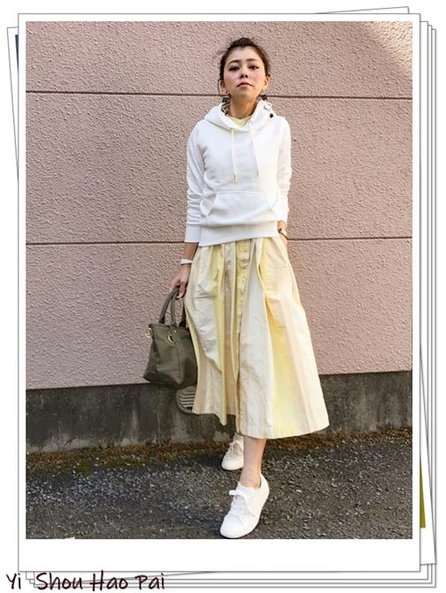 美丽的彩色裙子在春夏季非常活跃,是搭配白色连帽卫衣的好单品。要穿出成年风格,请搭配配饰和外套,展示出令人耳目一新的感觉的技巧。