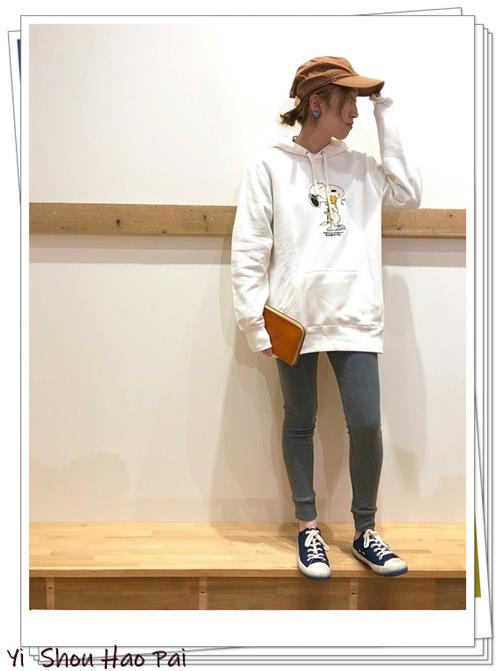如果你习惯打底裤,尝试一下灰色打底裤和白色连帽卫衣的搭配区别。如果是棕色单品,则不会干扰造型的气氛。