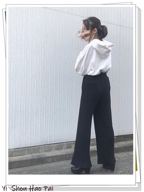 为获得干净的白色卫衣搭配,请尝试针织阔腿裤。柔软的针织阔腿裤的气息与白色连帽卫衣搭配。如果塞入上衣并标记出腰线,你会感到良好。
