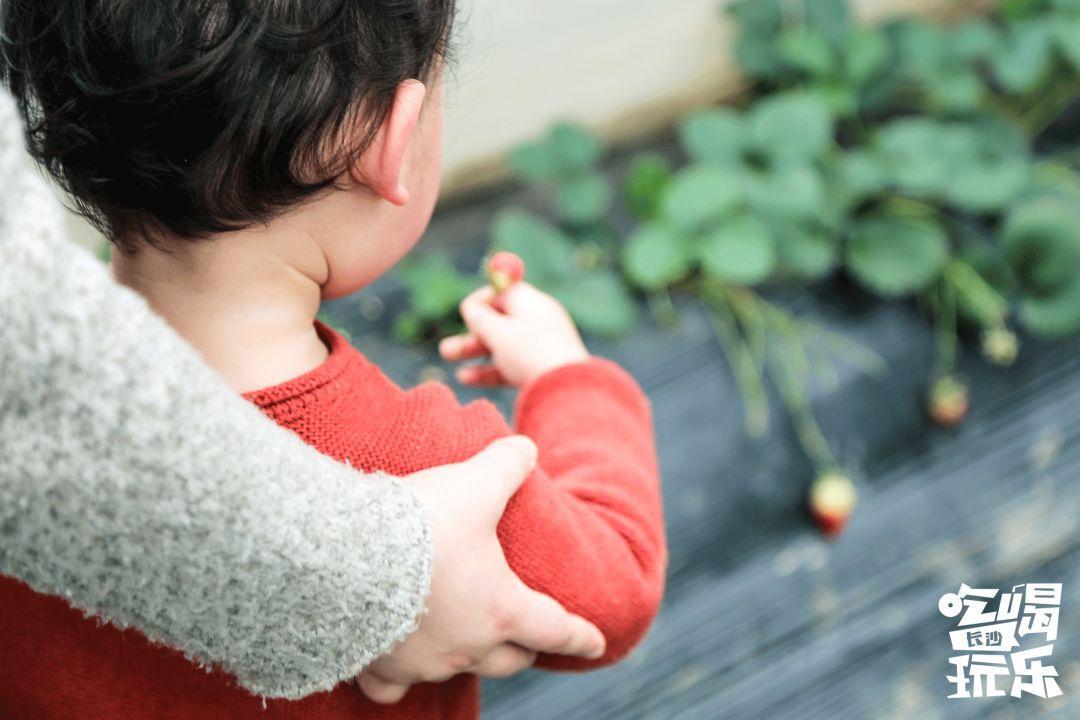 许多妈妈们带着小宝宝来采摘新鲜的草莓,亲近自然的同时也培养了小宝宝的动手能力。