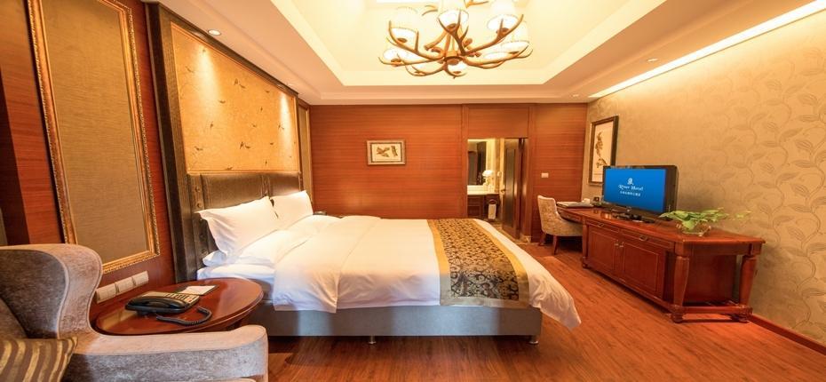 乐和乐都两江酒店共拥有连排和独立别墅客房106间,157张床位。整个酒店依湖而筑,推窗远眺,满目尽是苍翠林海及宁静源泊,环境幽雅、空气清新,是市区内唯一的原始生态园林式度假酒店。酒店设有高级单间、高级标间、豪华套房、亲子套房、行政套房以及独栋别墅。酒店糅合现代艺术与东南亚风格,充分利用优越的自然环境,体现了人工园林与自然景观的巧妙结合。豪华、典雅的客房内特设超大露天阳台,独揽绿化中庭动物岛、热带雨林植物的魅力风光,感受大自然的神秘与美景。酒店巨细无遗的贴心服务,让您充分体验身心愉悦的大自然与动物之旅。