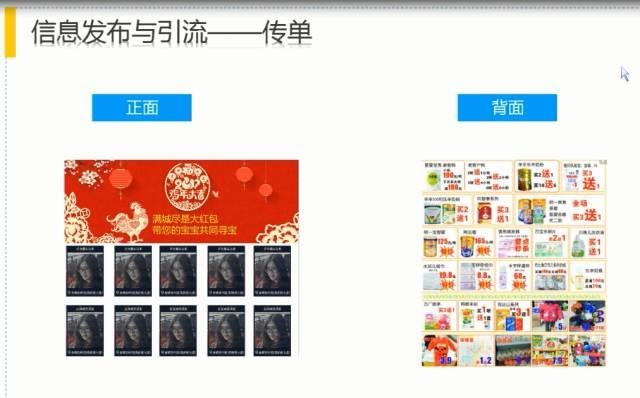 当然,传单依然不能少,在传单设计上,正面要将活动主题突出,将抢红包的几个线索放在传单正面,而背面就是用来承接店内活动,如下图: