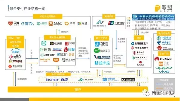 聚合支付平台,即融合了多方支付通道的平台。相对于支付宝、微信支付等第三方支付平台而言,属于第四方平台,其有别于支付宝及其他提供支付清算的持牌机构,不得触碰资金。聚合支付的功能是链接B端客户、帮助商户对接众多第三方支付平台。