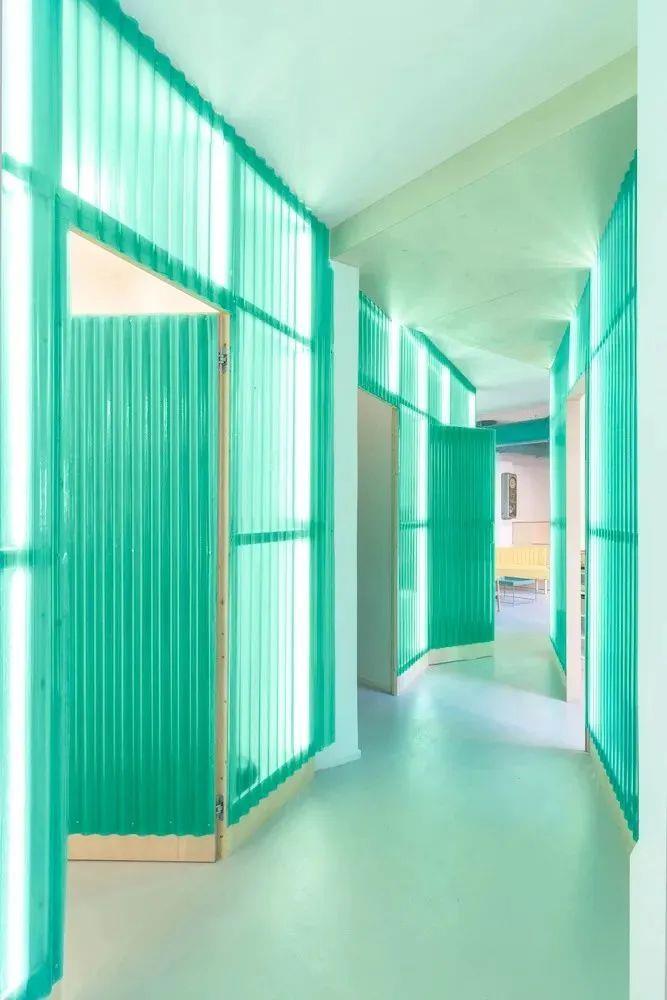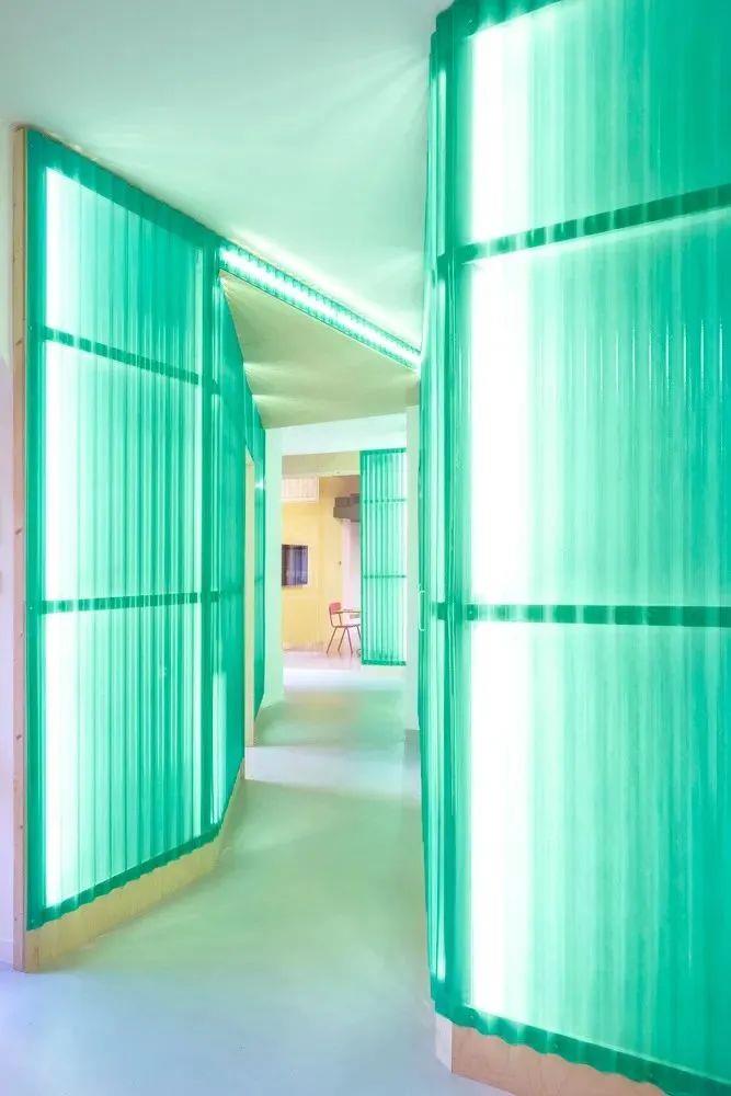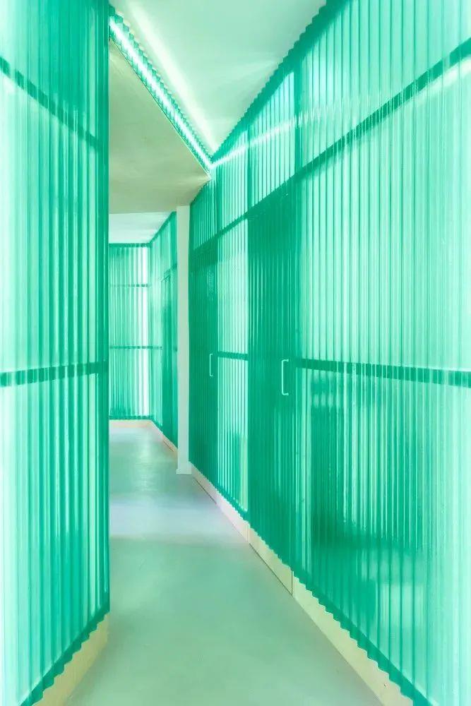 覆盖了一层半透明玻璃纤维的波纹状雨幕