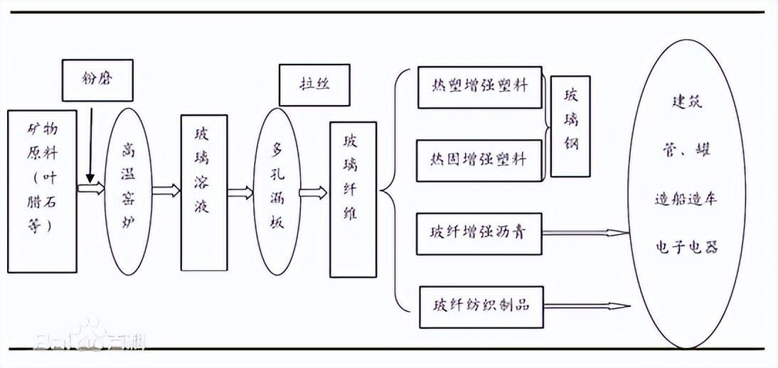 池窑拉丝法把叶腊石等原料在窑炉中熔制成玻璃溶液,排除气泡后经通路运送至多孔漏板,高速拉制成玻纤原丝。窑炉可以通过多条通路连接上百个漏板同时生产。这种工艺工序简单、节能降耗、成型稳定、高效高产,便于大规模全自动化生产,成为国际主流生产工艺,用该工艺生产的玻璃纤维约占全球产量的90%以上。