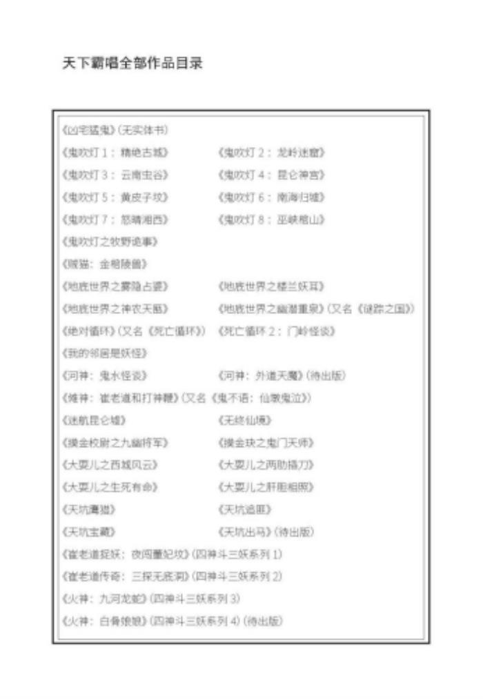 据了解,天下霸唱的确有继续创作“河神”故事的意愿,《河神:外道天魔》也一直记录在他最近出版的几部新书末尾的《天下霸唱全部作品目录》中,状态是“待出版”。