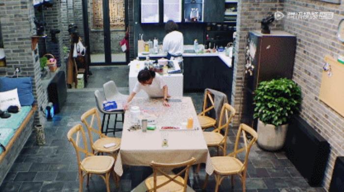 陈意涵想玩拼图,许富翔就忙来忙去帮老婆做饭。