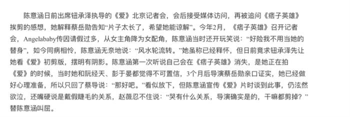 当年电影《痞子英雄》上映后人们发现,陈意涵饰演的女主角的戏份全部被删光;最后剩下戏份最多的,反而是彼时还是新人的杨颖(Angelababy)。