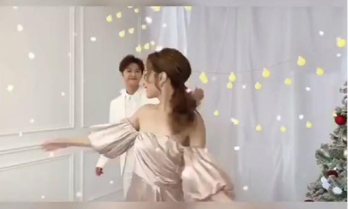 视频里,他们俩好像在拍一个MV,王子穿着白西装,邓丽欣穿着一套丝绸质地的礼服裙,可能要合体出镜做节目?
