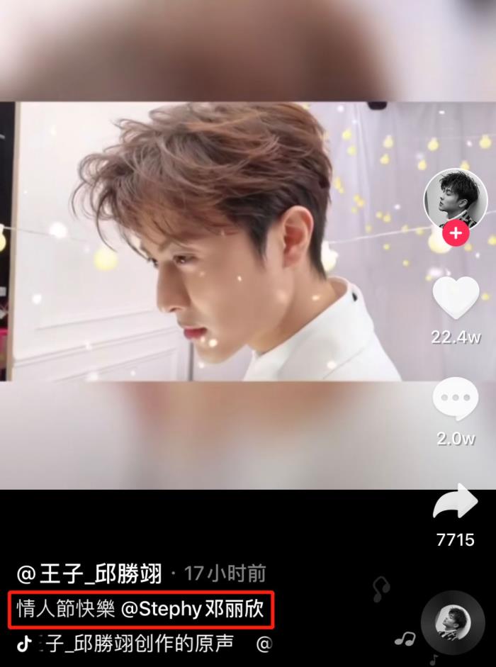 昨天情人节,棒棒堂王子邱胜翊很罕见地,居然在社交平台公开跟女友邓丽欣秀恩爱了。