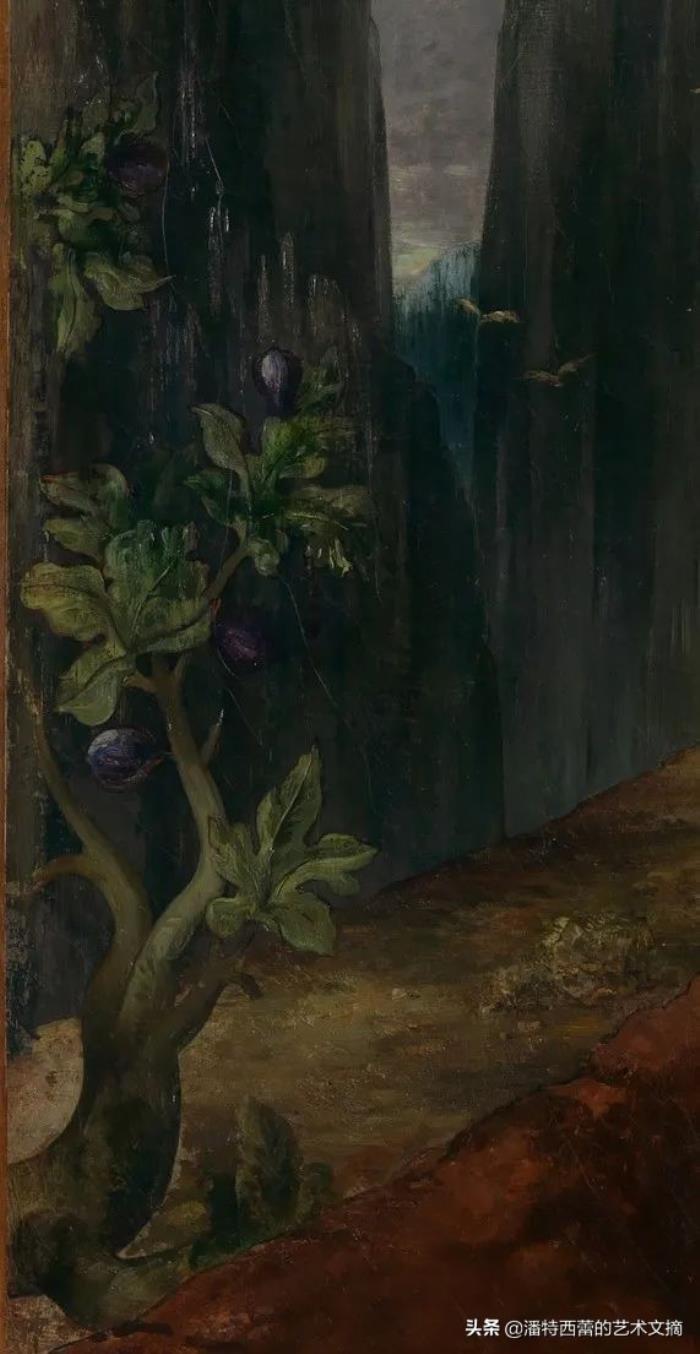 画作最左边,有一株无花果树,指明前方的道路。在描绘人类被逐出伊甸园的场景时,有时会用无花果来代表禁果。