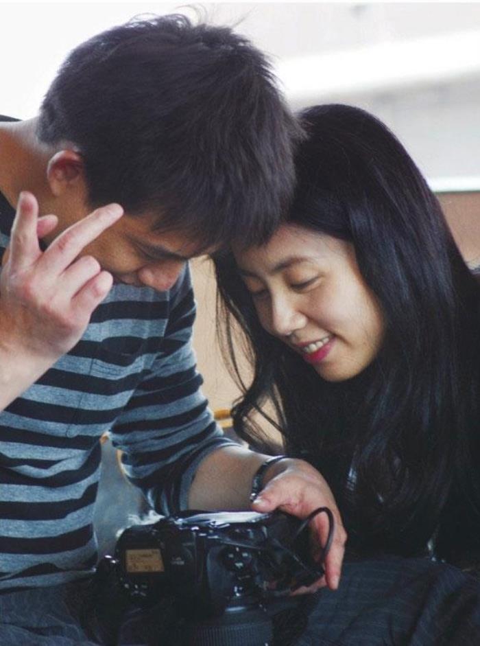 靠在孙莉肩上撒娇的黄磊。这张照片是孙莉二胎的时候。