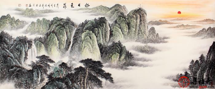 五岳独尊大靠山 张利国画泰山日出作品《旭日东升》【作品来源:集雅斋】