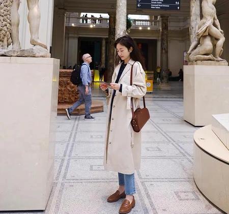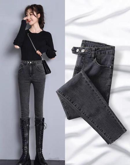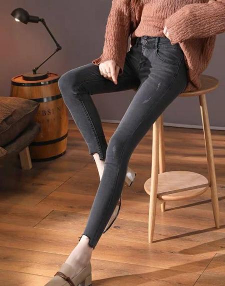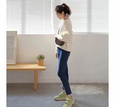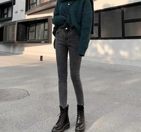这个颜色的紧身牛仔裤也挺百搭的,而且四季度都能穿。春冬天时可以上衣穿件打底衣+宽松版毛衣+一双高筒马丁靴/雪丁靴。真的超级温柔可人。或者是一件厚厚的棉服外套,可爱到爆炸呀。