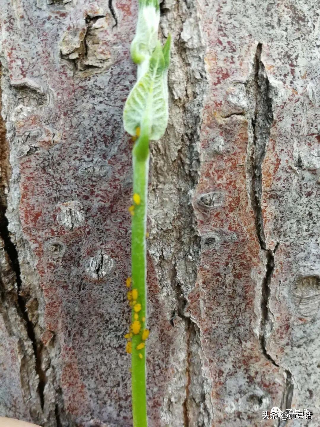 经过查询才知,这是蚜科蚜属萝藦蚜,常吸吮萝藦幼嫩部分的汁液,引起株体生长衰弱。明朱橚《救荒本草》“羊角苗”条:“又名羊奶科,亦名合钵儿,俗名婆婆针扎儿,又名纽丝藤,一名过路黄。生田野下湿地中。拖藤蔓而生,茎色青白。叶似马兜铃叶而长大,又似山药叶,亦长大。面青,背颇白,皆两叶相对生。茎叶折之,俱有白汁出。叶间出穗,开五瓣小白花。结角似羊角状,中有白瓤。其叶味甘,微苦。救饥採嫩叶煠熟换水,浸去苦味邪气,淘净,油盐调食。”萝藦的茎叶折断会流出白汤儿,民间用来治瘊子和扁平疣,我想当然的以为其汁液是有毒的,看蚜虫如此喜欢吸食,可能确如朱氏所言,是“味甘”的。萝藦蚜除了为害萝藦,萝藦科的鹅绒藤、白前、白薇、泰山白首乌(为萝藦科植物牛皮消和戟叶牛皮消的块根)等药材也常被它“祸祸”。徐长卿(黄县话称为“头发草”)也属于萝藦科,不知是否也招萝藦蚜呢?