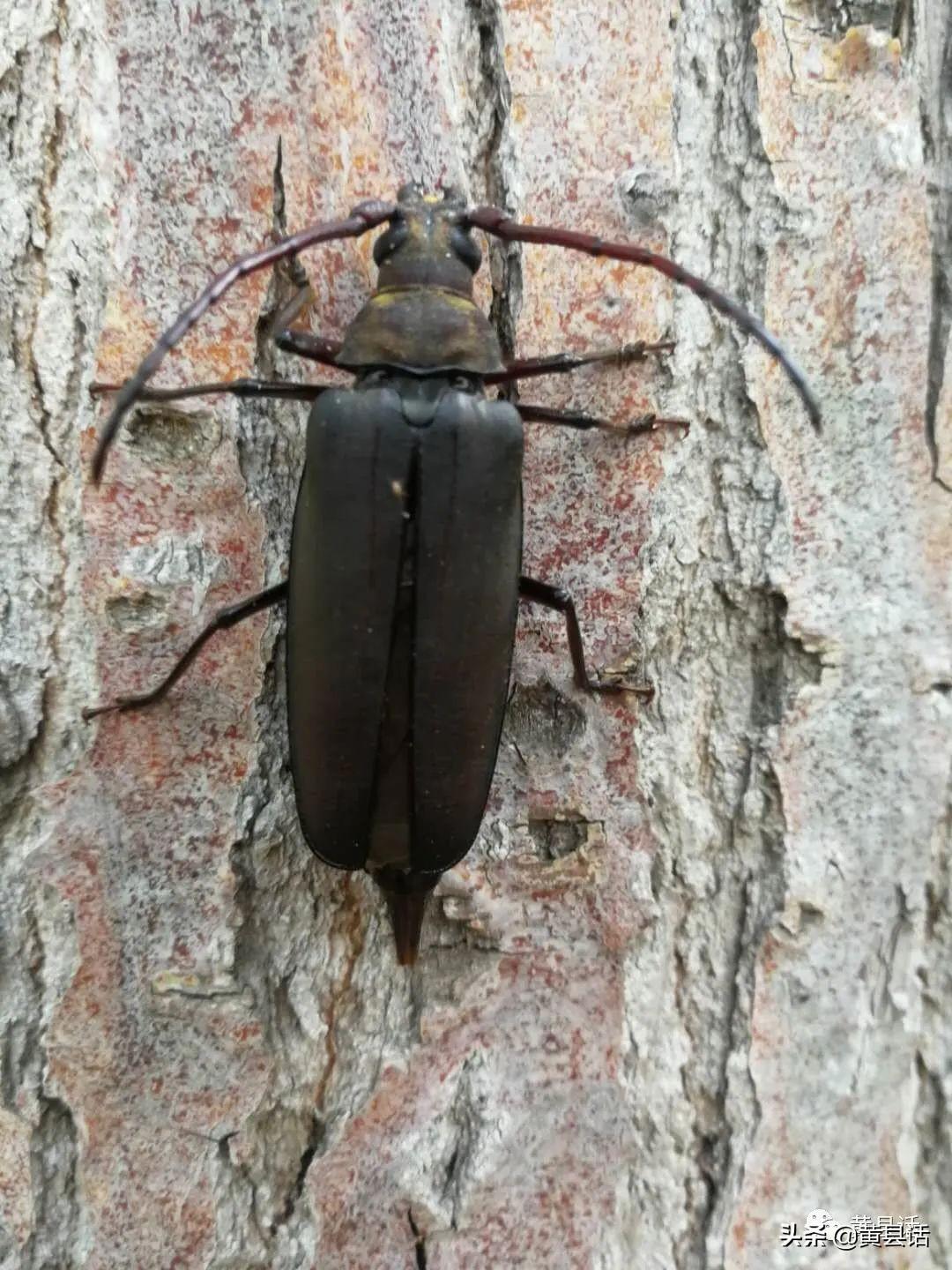 香水牛是可以烧来吃的,臭水牛没人敢吃。好吃的称为“香”,比如黄县话常说的“香饽饽”“香波螺”,香水牛之名可能是这样来的。另外,它的体色接近黄县话所说的“香色”,得名也可能与颜色有关,黄县话所说的“香梭儿”也是这么来的。那只香水牛见我走近,却并没有飞走,像是专心致志在做着什么。仔细一看,它的尾端伸出一截产卵管,正在探索树皮上的裂缝往里产卵呢。我揪着它的长鞭状的触角把它提溜起来,它挣扎着,盔甲摩擦发出“吱呀吱呀”的声音,张合的大颚表明它对我打断其工作的愤怒,或许是挣扎得太用力了,几粒白色的卵粒从产卵器中挤了出来,看上去有点惨烈,我忙把它又放回树上,它理都没理我,直接趴在那里继续它的产卵工作。
