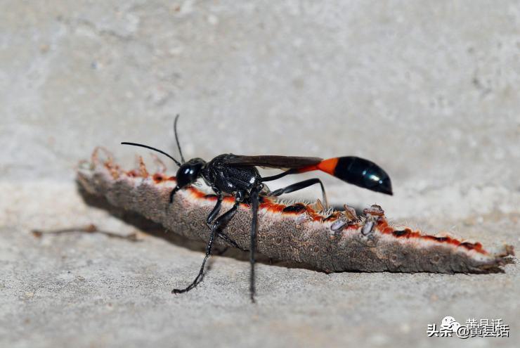 等我下午再过来,发现它正拖着一只蜇晕的毛虫往洞边挪,前后花了足有半个多小时的时间,才把毛虫拖进洞里,沙泥蜂也钻了进去,这是要在毛虫身上产卵,这样等幼虫一孵化就有肉吃了(不得不说,沙泥蜂的保鲜技术比人类强多了)。在里面折腾了好一会,沙泥蜂才倒退着爬到洞口,用土块堵住洞口,还叼来几块砂粒,那洞口弄的平平整整,和周围环境融为一体。