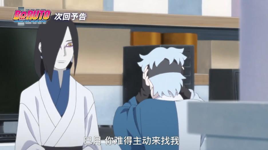 这一集的剧情完全没有下集预告有意思,从下集预告中,巳月回到了大蛇丸的基地中,他说自己最近身体出了问题,经常晚上做梦梦到和博人第一次见面时候的事情。