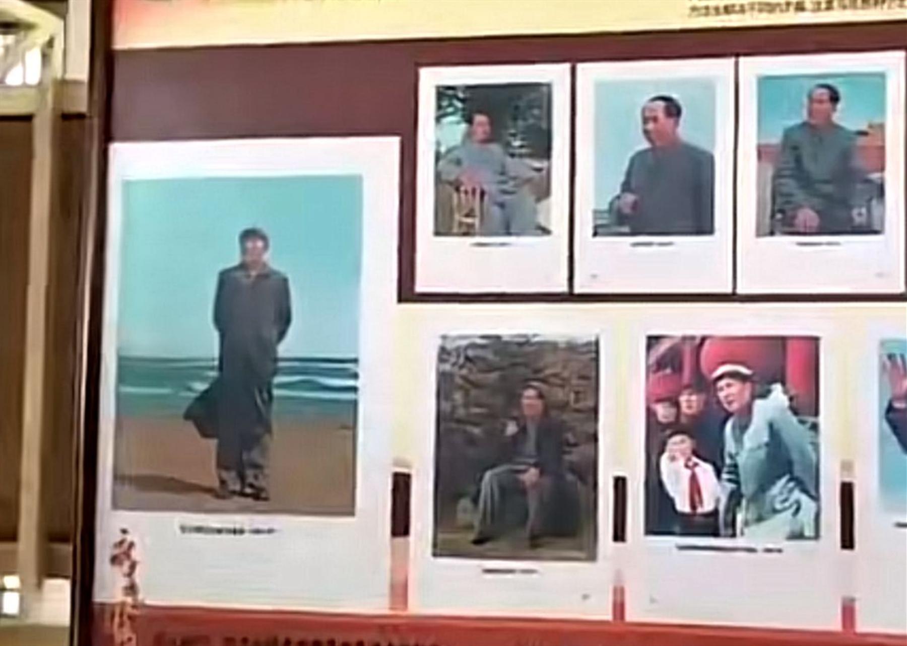 馆内悬挂着毛主席、周总理和其他重要领导人的画像,并且还有中国革命时期的大幅照片等等。