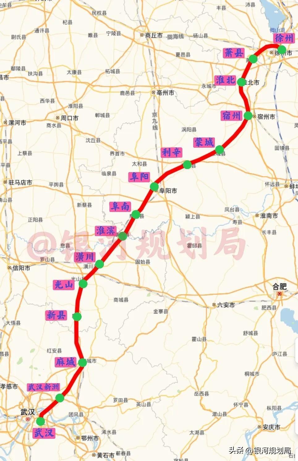 徐州至武汉高铁,简称徐武高铁,设计时速350km/h,跨越江苏、安徽、河南、湖北4个省,连通我国两个重要的交通枢纽,华中和华东地区又一高铁大动脉。根据规划,徐州至武汉高铁分为徐州至淮北段、淮北至阜阳段、阜阳至武汉段,其中徐州至淮北段可以利用既有高铁,新建淮北至武汉路段。目前,淮北经宿州至阜阳高铁即将建设,那么徐武高铁全线将只剩下阜阳至武汉段没有具体落实。