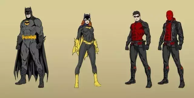 除了小丑,姐夫还公布了3位蝙蝠家族成员蝙蝠侠、蝙蝠女、红头罩和蝙蝠车的造型。