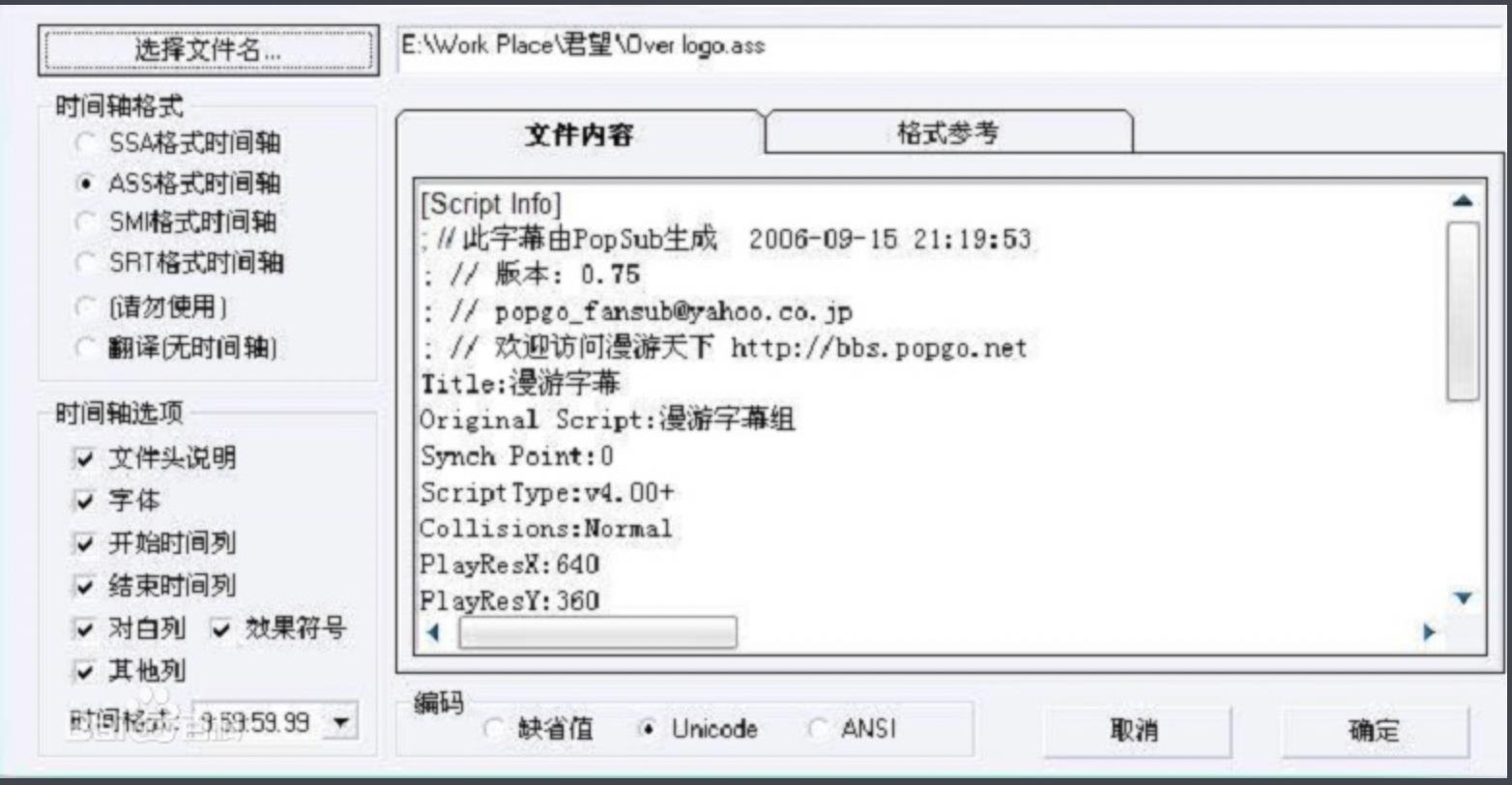 3、ASS格式,是一种文件格式,是大多数字幕制作者所公认的并且经常使用的字幕格式。