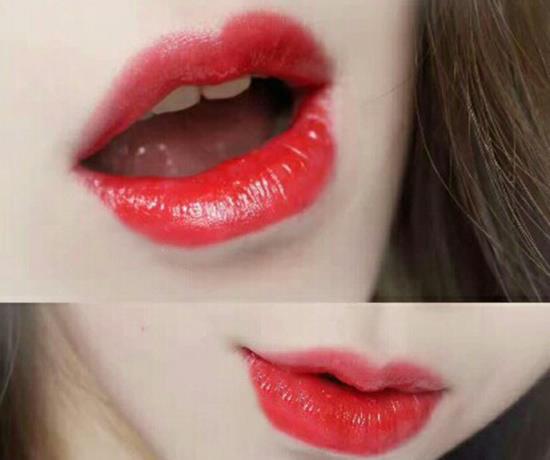 金闪上嘴后就不明显了,但会让人觉得你的嘴唇在发光!看上去像是小时候妈妈从零食店买回来的草莓软糖,草莓红+细闪真是太好看了。