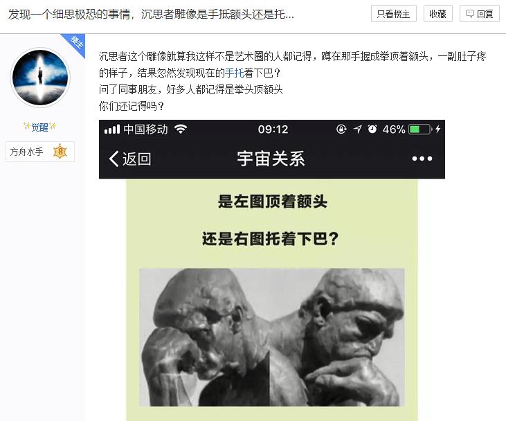 曼德拉效应(12)雕像思考者,到底拖着头还是拖着下巴