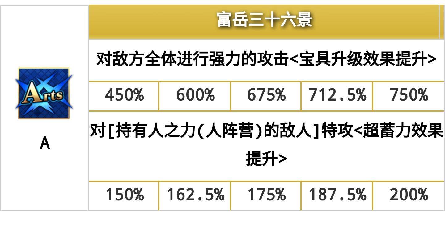 再看技能组,一回合闪避,30自充,三回合蓝魔放,还有蓝卡赋予的追加效果,强化解除耐性等亮眼的节能组,配合蓝卡队的副手(狐狸,孔明,c闪闪等)可以发挥出不俗的效果(闪闪放出王之回归后北斋宝具甚至可以期待用于打星,暴击后增加宝具堆叠速度),北斋也有不俗的辅助能力,降防幅度无论是boos战或者是车轮战都有很大的表现空间。