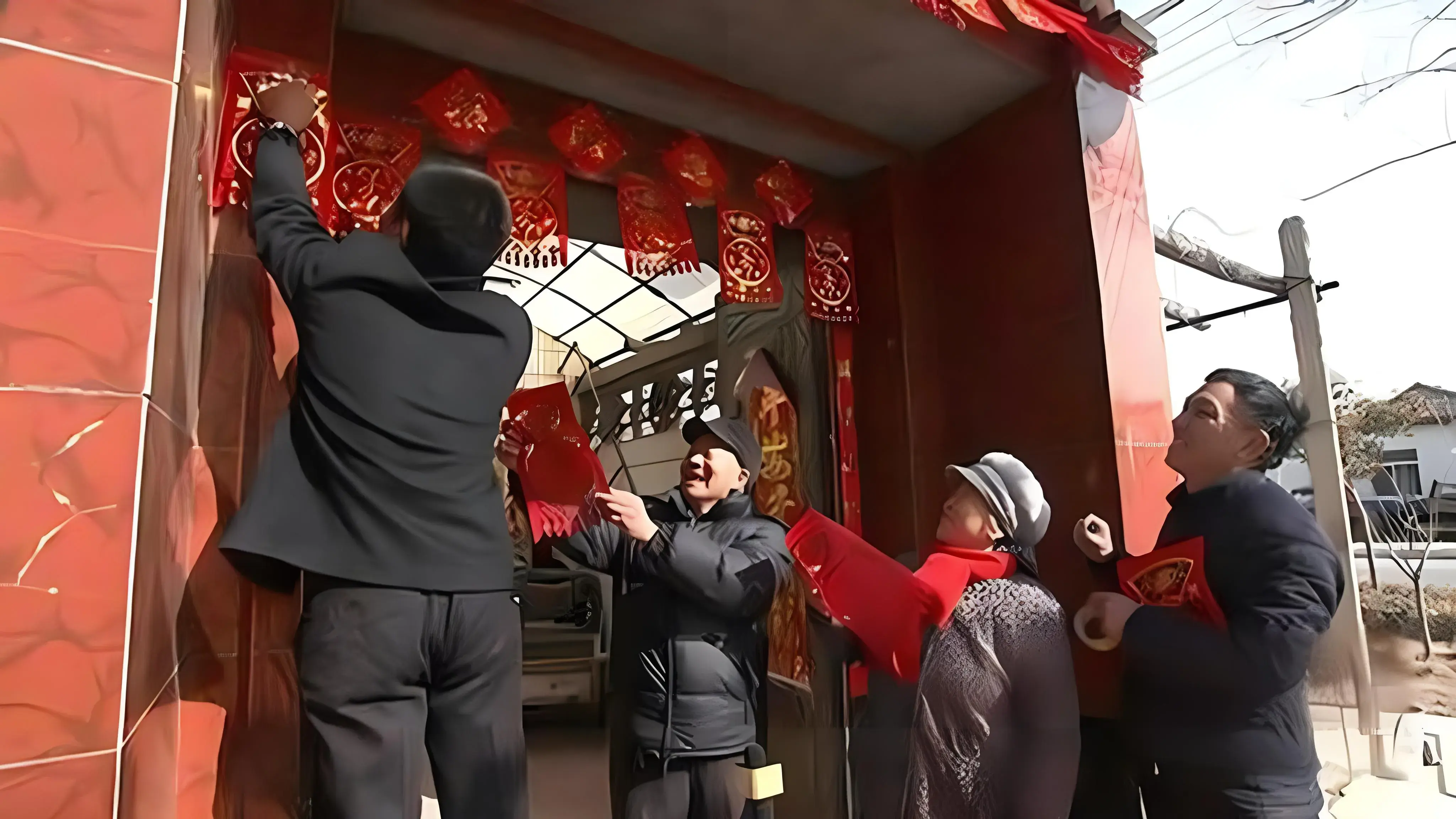 贴春联是另一个重要的传统习俗。在春节期间,人们会在门口贴上红色的春联,上面写着对新年的祝福和期望。春联通常由两句对句组成,寓意着吉祥如意、幸福安康。