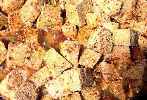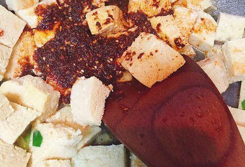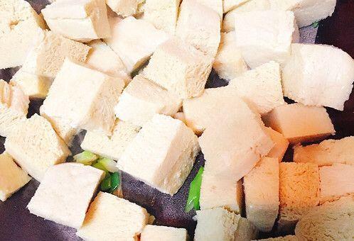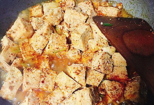 出锅前放入少许盐和味精翻炒一下就可以吃咯,,吃的时候你会尝到麻辣味完全让冻豆腐吸收好吃的呦快来试下吧