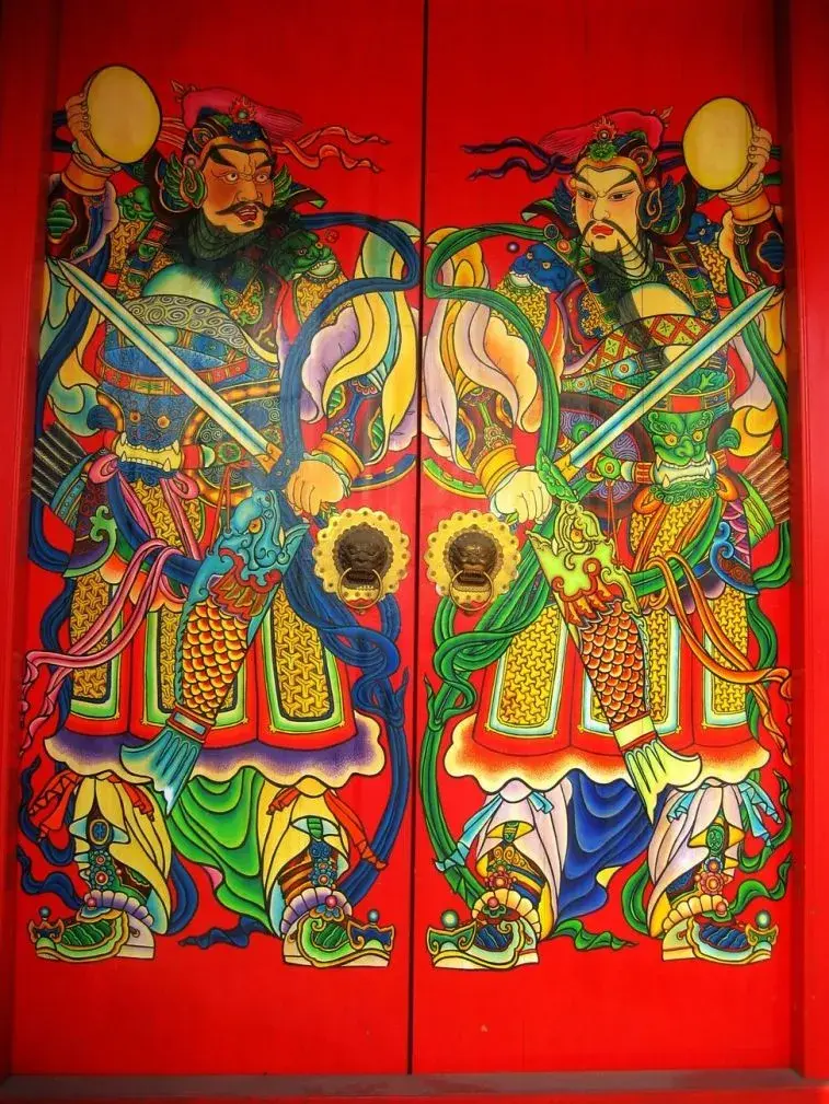 门神的贴法一定要对,侧脸的一定要脸对脸贴,表示同心协力。正脸的看手持的兵器,兵器对着门中间贴,不要贴反了,否则以后遇到事情会“左右为难”。