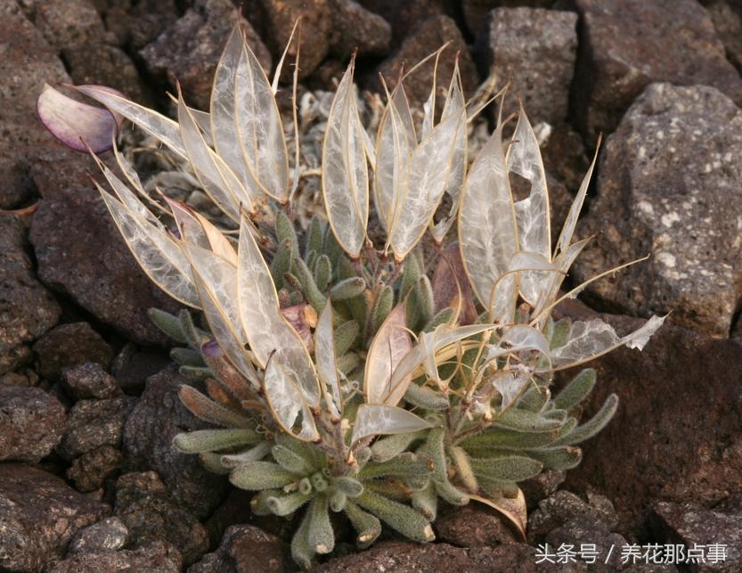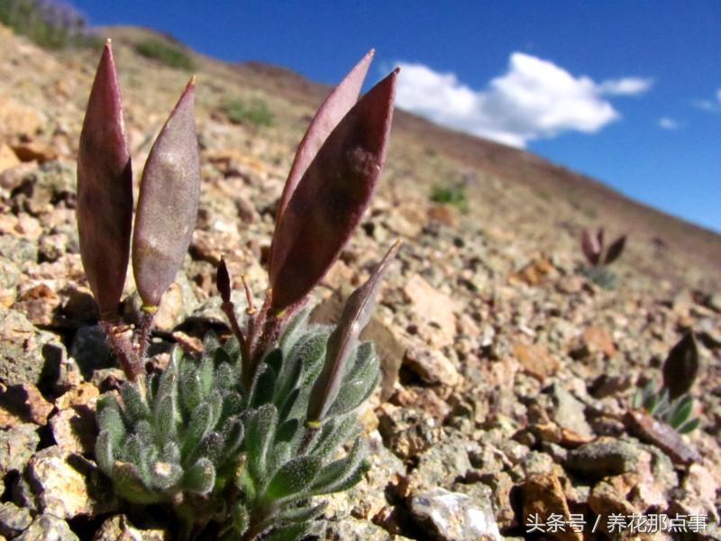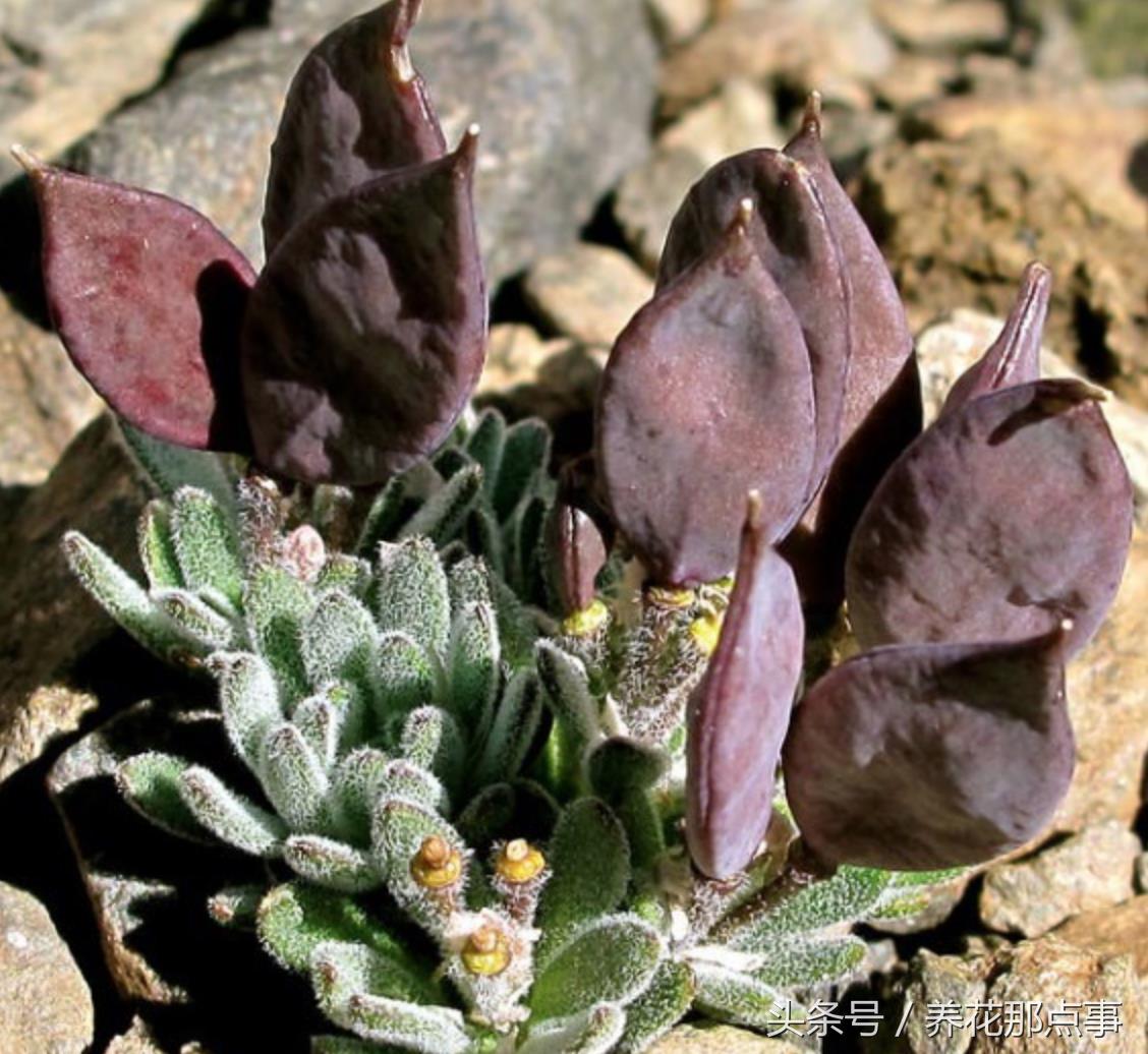 大地翅膀又称蝉翼荠,学名Anelsonia eurycarpa,隶属于十字花科蝉翼荠属,大地翅膀是蝉翼荠属中的唯一物种,是多年生肉质草本植物。这边说明下,它不是多肉植物,它和萝卜、大白菜这些东西的关系更近。原产地是美国的落基山脉上的流石滩,分布很广,但是数量仍然稀少,被列为保护植物。落基山脉那边气候干旱,土层稀疏,阳光强烈,紫外线非常强,高温能达到40度,低温能达到零下20度。