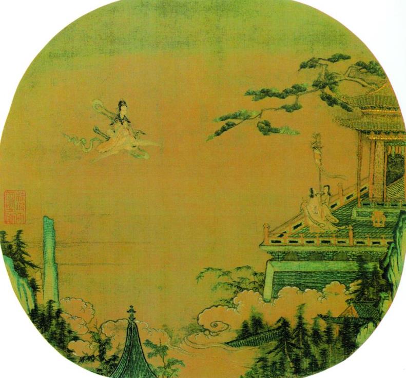 具体的造型,可以从中国的两幅名画中看出。一个是《瑶台跨鹤图》,一个是《瑶台步月图》。