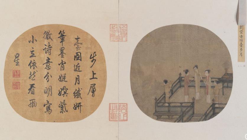 《瑶台步月图》画中写仕女于高栏杆内赏月情景,人物纤秀,景色空濛。画中女子的穿搭和发誓都各有特色。