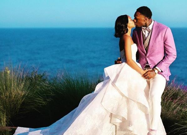 虎扑10月26日讯 前NBA球员塔里克-布莱克今天在个人Instagram上晒出一张自己与妻子的结婚照(见新闻配图)。