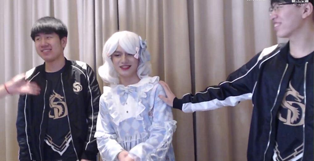 SDG的队友们想必也是第一次近距离接触这种场面,朝夕相处的队友打扮起来竟然如此动人……从出镜两个队友的表情来看,他们对Mark的女装应该是很满意的,细看之下甚至有点兴奋,还是害羞的表情?
