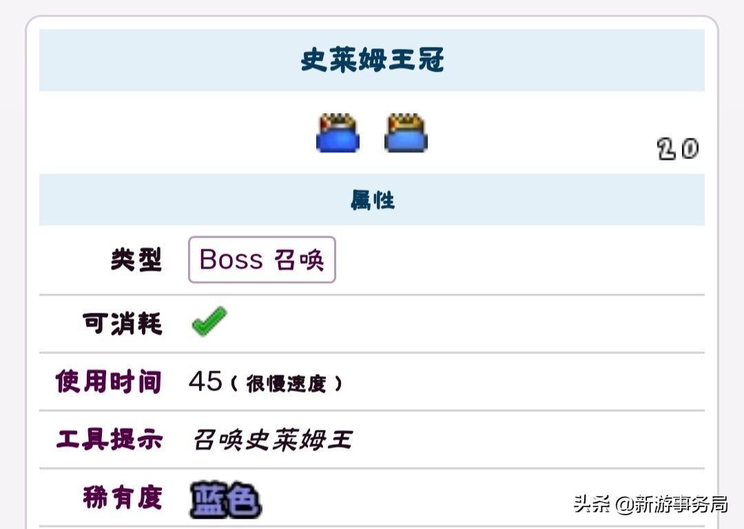 如果你既没有在地图上找到主动刷新的史莱姆王,也没有达到出现史莱姆雨的条件,那么还有第三种办法可以召唤史莱姆王,那就是使用史莱姆王冠,也就是史莱姆王头上戴着的那个王冠。