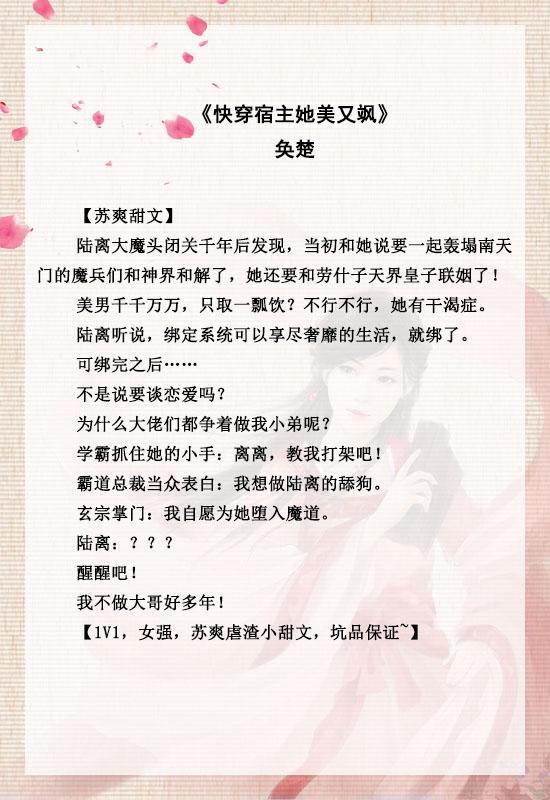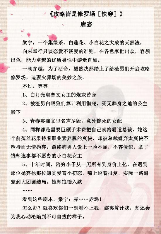 七七给小天使们推荐一波快穿苏爽文,全世界女主最美最厉害,没心没肺把渣男虐得死去活来,好看哦~