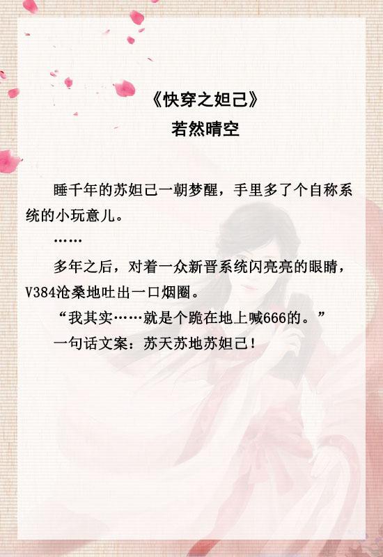 短评:女主是一代妖姬苏妲己,又苏又撩,而且没心没肺,一不小心被还愿系统绑定,任务是获得攻略对象满分好感,这对于她来说简直是轻而易举,从此系统被苏妲己带飞,一路躺赢。