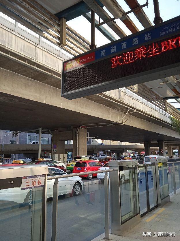 从我住的小区到乌鲁木齐火车站,最方便的交通工具就是BRT5号线,我在南湖西路站等车的时候,这条路车辆很多,是乌鲁木齐市田字型路网的中间干道,属于市中心路段。等了一会就坐上车了,乘客不算多,座位没有坐满,从这到火车站需要三四十分钟。