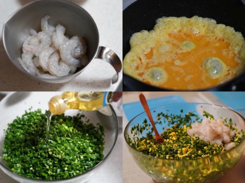 食材准备:面粉、韭菜、鸡蛋、虾仁