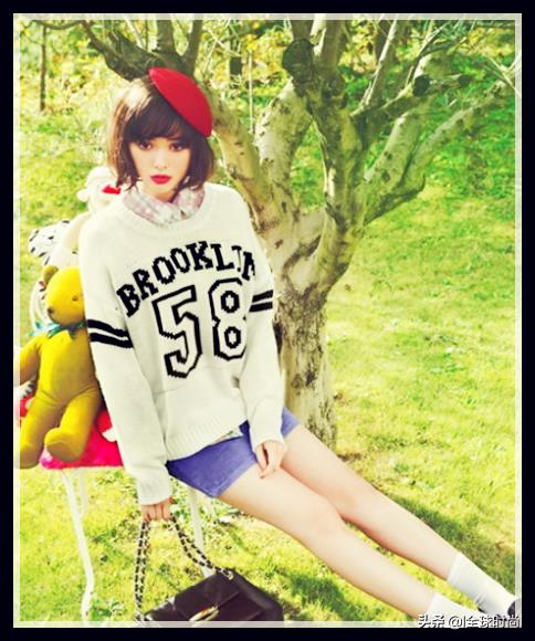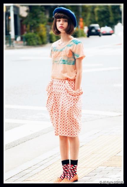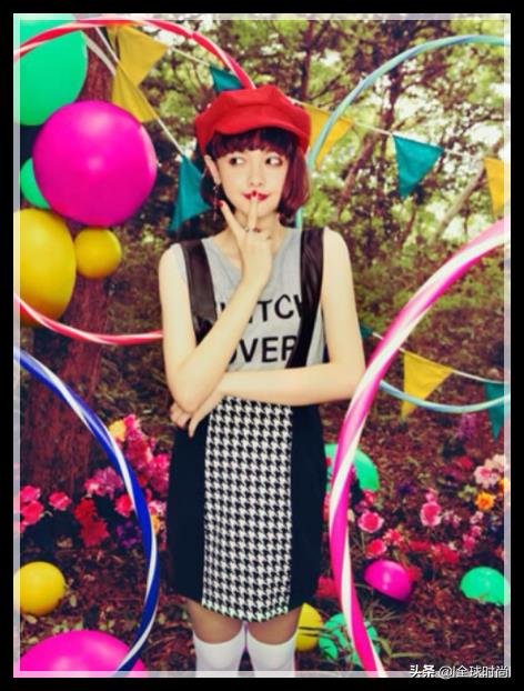 有的时候,她的可爱的装扮带着点精干,无论是马甲连衣裙,无袖T恤搭配黑白相间的短裙,搭配一个特殊气质的红色圆帽,很独特的风格高挑的身材和十头身的优势凸显。