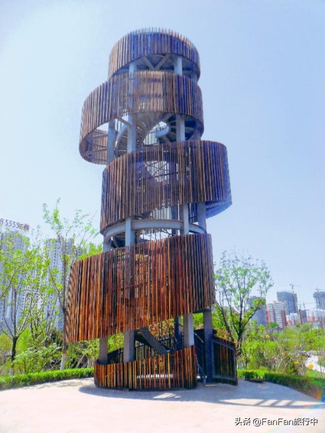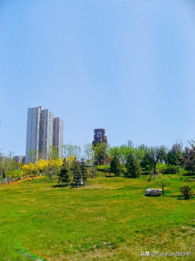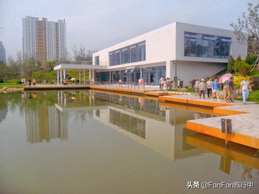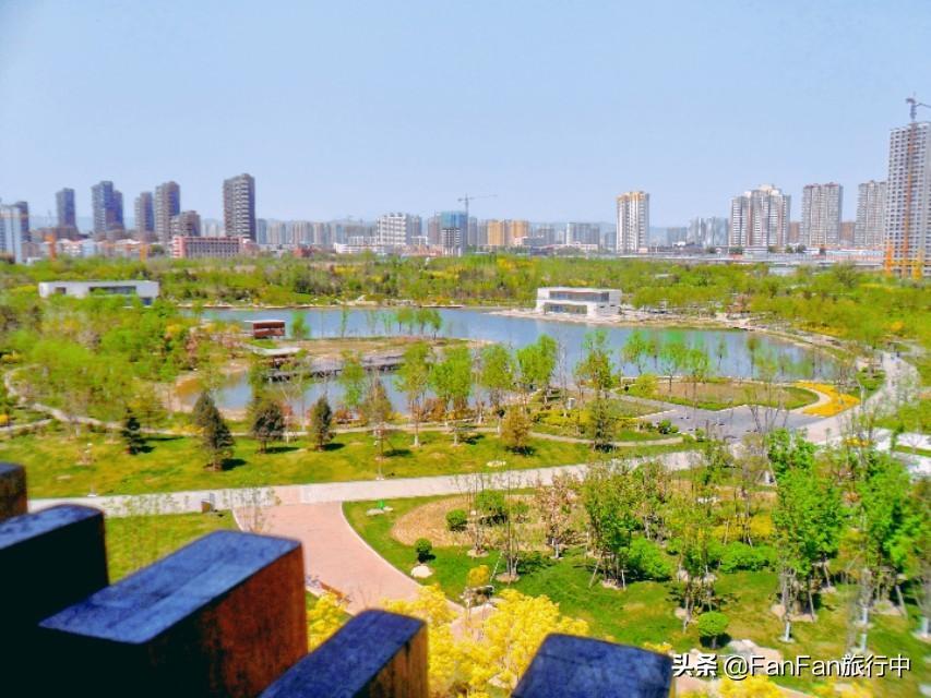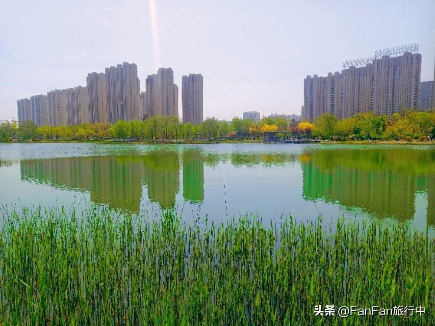 太原和平公园,外形轮廓酷似游来游去的鱼,鱼嘴朝东南方向,鱼尾在北方,位于“鱼肚”部位则是公园的景观核心区域中心湖泊。