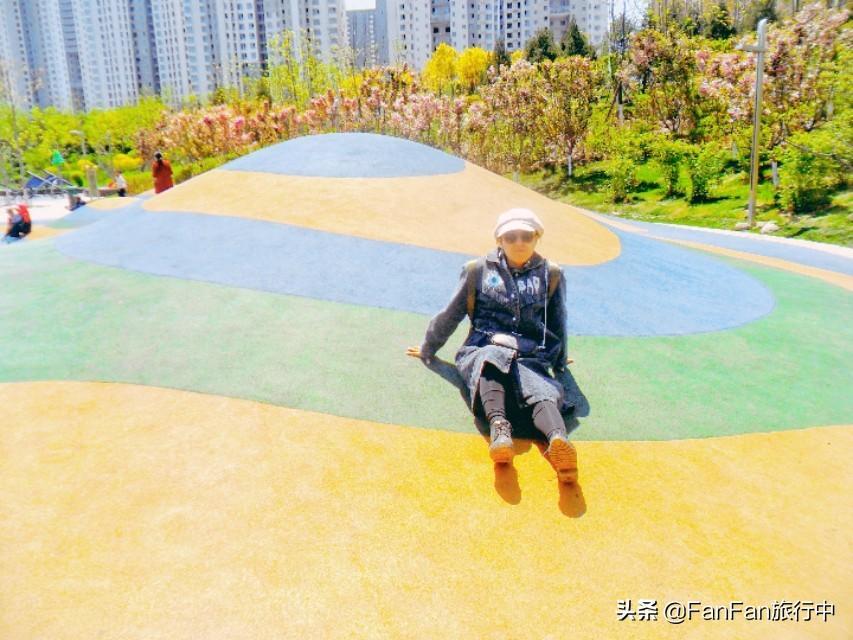 在公园东南侧入口处附近设置有儿童游乐区,场地采用木质、橡胶铺装,设置尺度适宜、趣味性强,兼具创造性与探索性的儿童娱乐活动设施。