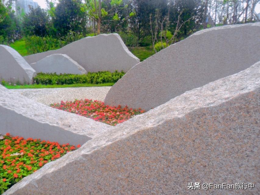 鱼尾方向是公园的主入口,设置的节日广场上,打造了以太原锣鼓为主题的系列景石雕塑,景石上镂空呈现不同打鼓人物的剪影,充满浓厚的山西地域特色。