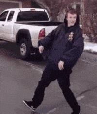 好奇怪,请问他是怎么做到的?难道地面上有冰吗?
